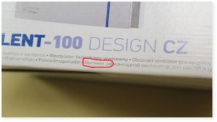 1. На коробке вентилятора-подделки имеется грамматическая ошибка.