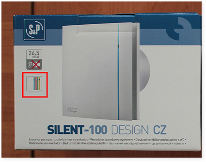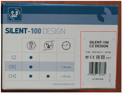Вентилятор упакован в похожую на оригинальную упаковку Soler&Palau - коробки имеют маркировку и серийные номера одинаковые на всех контрафактных вентиляторах. Плохое качество полиграфии видно не вооруженным глазом, а именно блеклые краски, плохо читаемые шрифты. Даже картон другого качества, цвета, фактуры - более толстый (клееный, многослойный).
