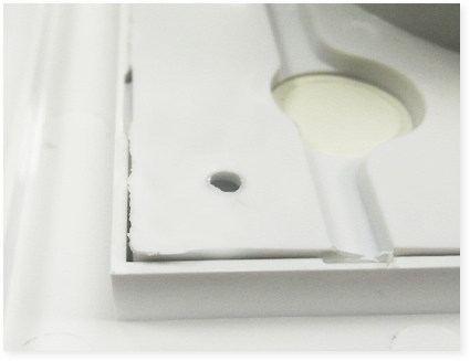 3. Крепление панели, крышки и корпуса неплотное. Видны зазоры и перекос элементов. Места креплений деформируются при сборке.