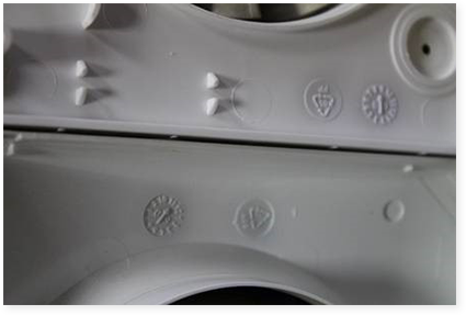 4. Если открыть сам поддельный вентилятор, то можно заметить отсутствие на корпусе заводских штампов даты и года выпуска, надписи АВС пластик и тд. На пластике оригинального вентилятора стоит заводской штамп АВС.